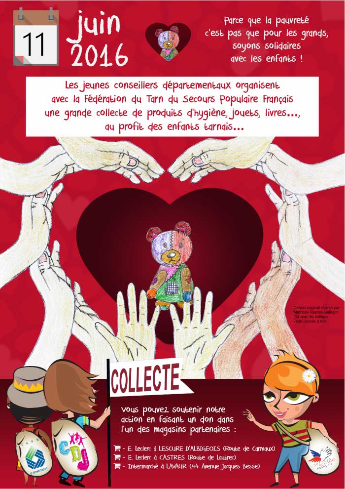 Hey ! J'ai découvert un truc vraiment trooooooop cool ! Vous connaissez le Conseil Départemental Jeunes ? Il y en a un dans le Tarn. En gros, tu te présentes en début d'année quand tu rentres en 5ème et tu peux te faire élire pour rejoindre d'autres collégiens et faire des projets trop ouf ! Regardez le lien ;)